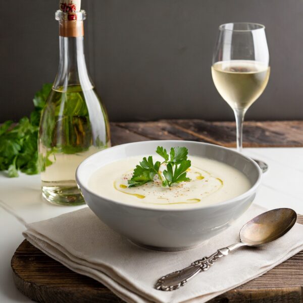 Riesling wird an der Mosel nicht nur getrunken, sondern auch fürs Kochen verwendet. Für die kalte Jahreszeit eignet sich die traditionelle Rieslingsuppe ganz besonders. Allerdings wird für ihre Zubereitung meist Sahne oder Rahm in industriell anmutenden Mengen verwendet. Was kann bei einer Alternative Abhilfe schaffen? Eine Mischung aus Pastinaken- und Kartoffelpüree – am besten mit einem kleinen Schuss veganer Sahne – verleiht der Ersatzversion das typische Aussehen und sättigt außerdem zusätzlich. Eine ideale Lösung für alle, die sich auch im Veganuar nicht die Suppe vom Teller nehmen lassen wollen.